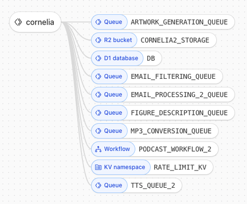 I started with a Cloudflare worker and expanded into using a variety of Cloudflare services: their queues, R2 (artifact storage), D1 (sql), KV (kv):
